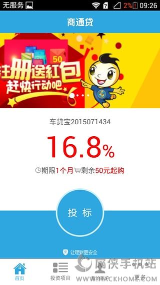 商通贷app下载是一款手机理财神器,门槛低收益高,50元起投,年化收益可达18%,多种期限,投资灵活,资金由第三方托管,可以放心理财。