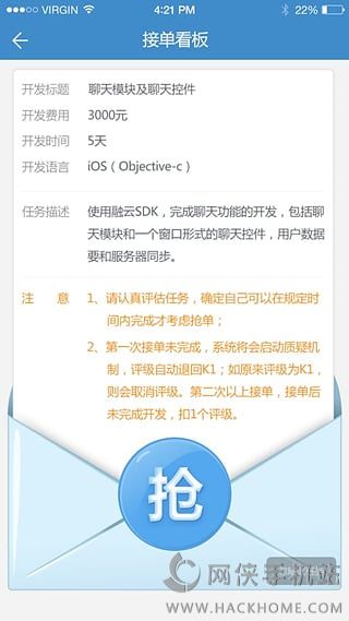1.一键抢单:通过系统智能匹配或者项目主直接推送,程序员可以快速抢单,开发任务一键收入囊中;