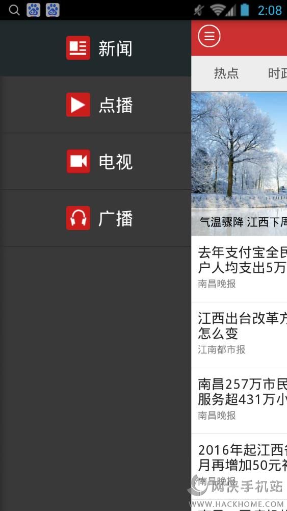 2、江西卫视等九套电视直播、江西新闻广播等八套广播直播随时观看,江西新闻联播、社会传真、金牌调解等电视节目随手点播;
