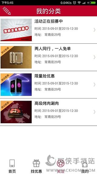 1.首页:汇聚最新活动,限时抢购,限量抢购优惠力度空前。推荐商家及活动经过严格筛选,给用户带来最大的实惠。