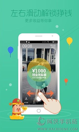 2、右划捡小钱:向右划动,解锁进入桌面,轻轻松松捡小钱;