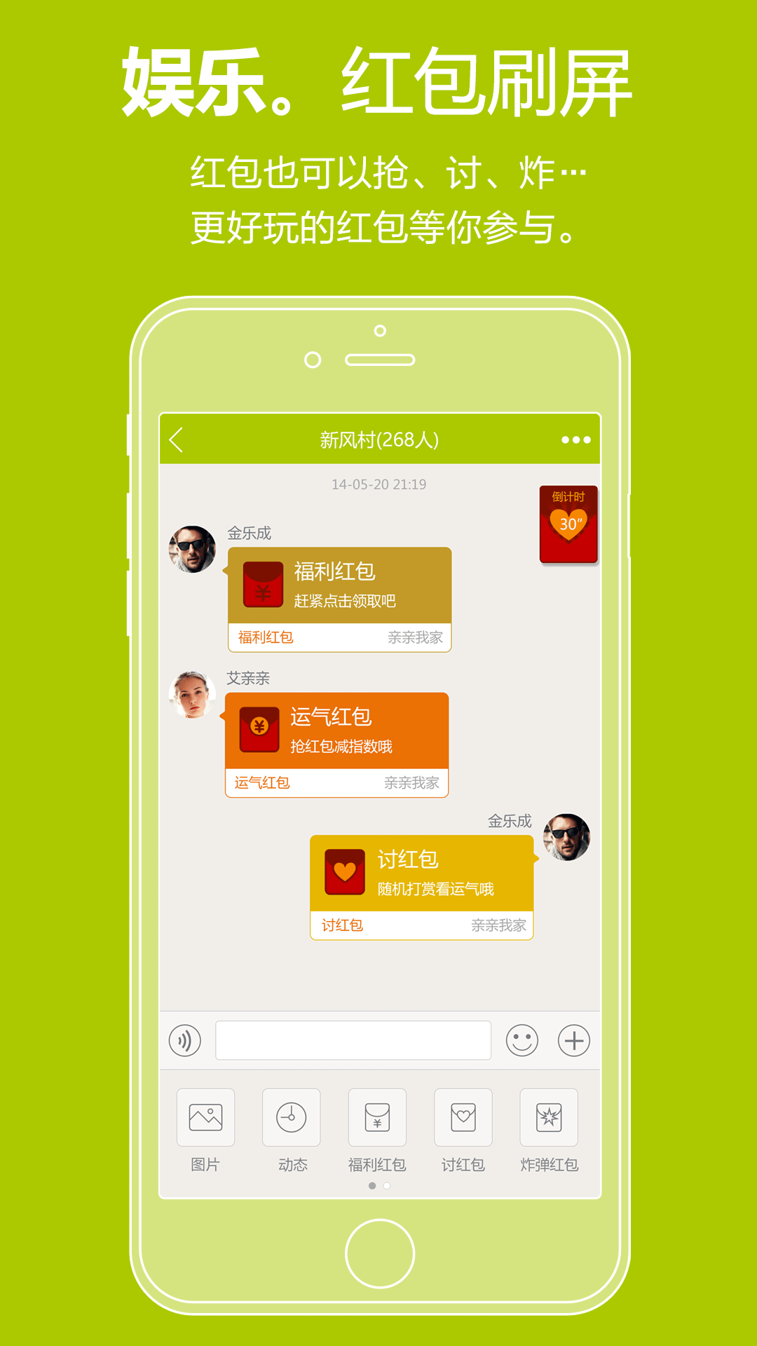 4、增加新版块:家乡,和亲人老乡一起聊天、抢红包;