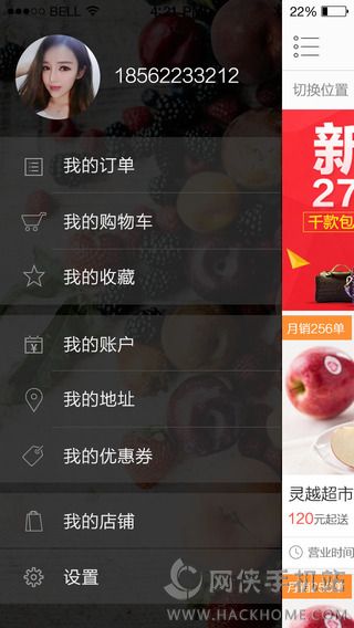 1、顾客打开APP并定位后,会获取周围超市及便利店的商品列表,选择任一便利店获得商品清单,可以在线选购商品并下单;