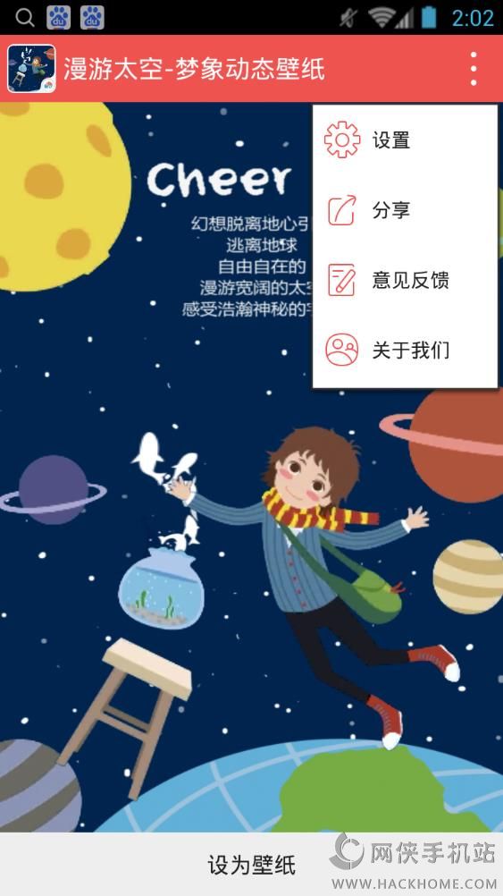 漫游太空梦象动态壁纸手机版app下载是一款可爱的卡通壁纸软件,界面美观,使用清新的插画给人以遨游太空的遐想,逃离地球,自由自在的美妙你应该能感受的到哦!