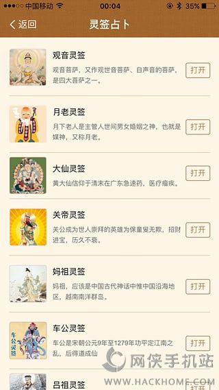 3、【灵签】提供观音灵签、月老灵签、黄大仙灵签、关帝灵签、妈祖天后灵签、车公灵签、吕祖灵签等工具与资讯;