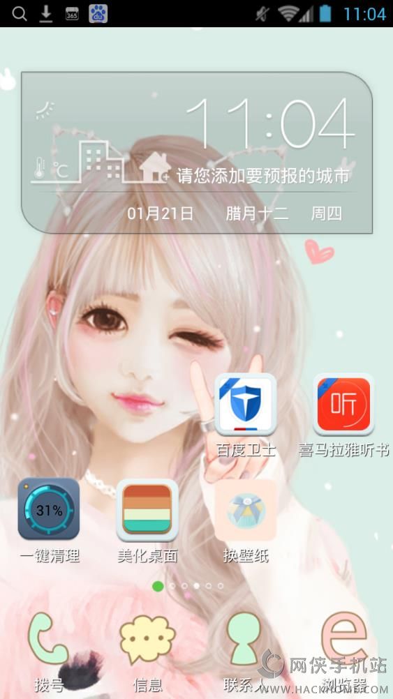 1、狐媚女孩,手绘温馨可爱小女孩主题,下载主题安装包,安装安卓桌面,美化效果才能显示哦;