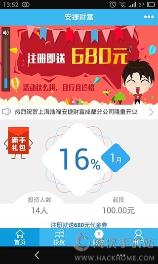 浩禄金融app下载手机版是一款手机金融理财客户端,为用户提供优质的理财产品,产品丰富期限多样,投资灵活,可以随投随取,资金由第三方平台控制,可以放心投资。