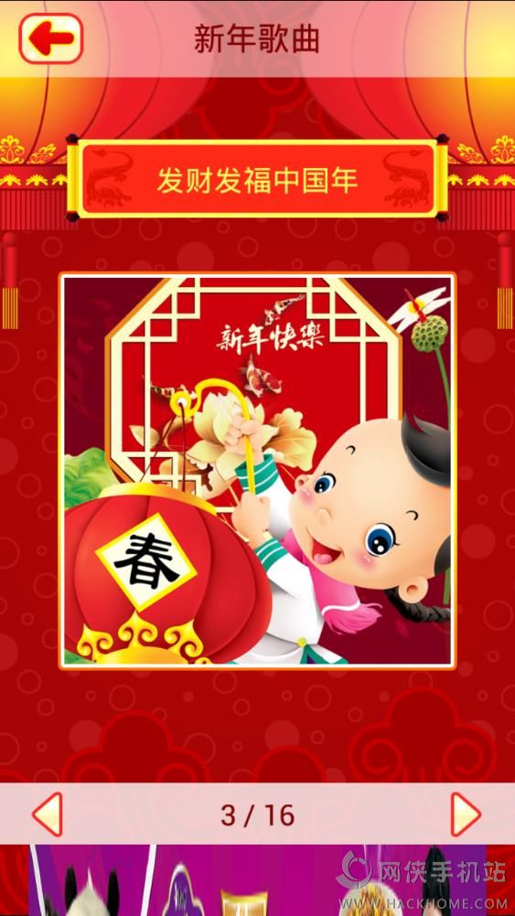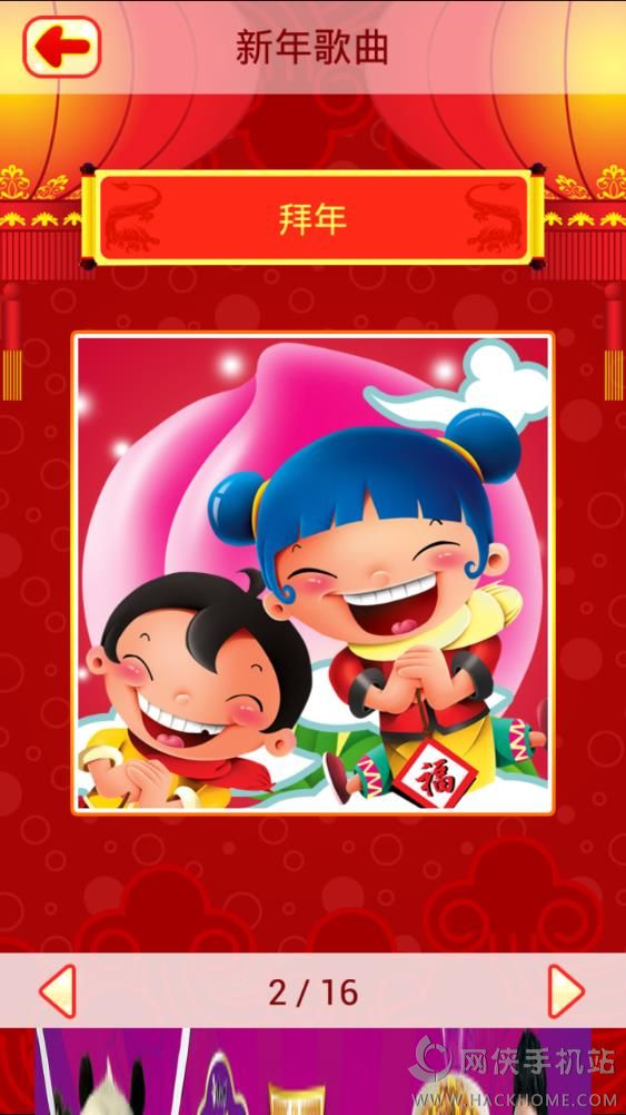 1、《春节喜庆歌曲》又是一年吉祥春,欢欢喜喜过大年,带互动的新年歌曲,喜庆洋洋的新春界面,加上有趣的动画点缀;