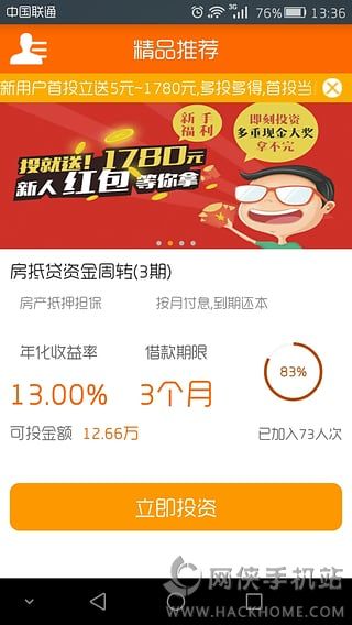 抱财网下载手机版是一款移动金融理财平台,门槛低收益高,理财项目丰富,期限多样投资灵活,可以随时进行投资或体现,推荐给喜欢理财的朋友。