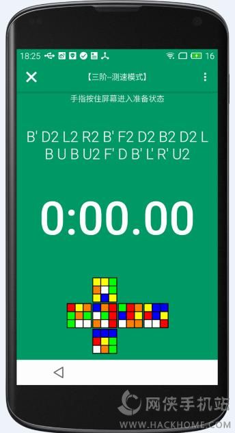 3、专业魔方计时器:自动生成WCA的主流魔方打乱公式、打乱后的二维平面图示,练习和测速模式计时,成绩分类列表,统计图,分享等;