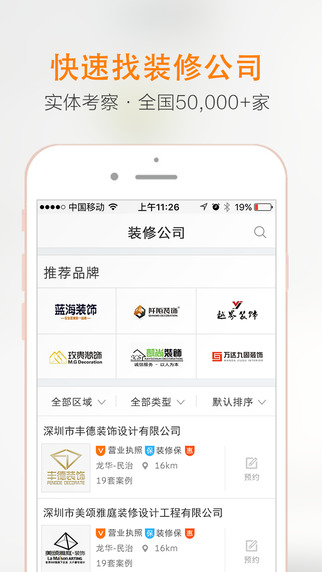 1、覆盖全国近200多个城市,近6万家真实装修公司,定期实地考察装修公司的经营情况;