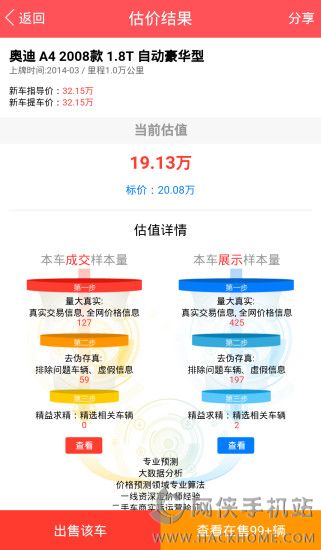 10、估值:基于大数据海量交易历史为您提供最准确的车辆估价,并提供目标车型市场分析功能,让您以"最聪明"的方式完成交易;
