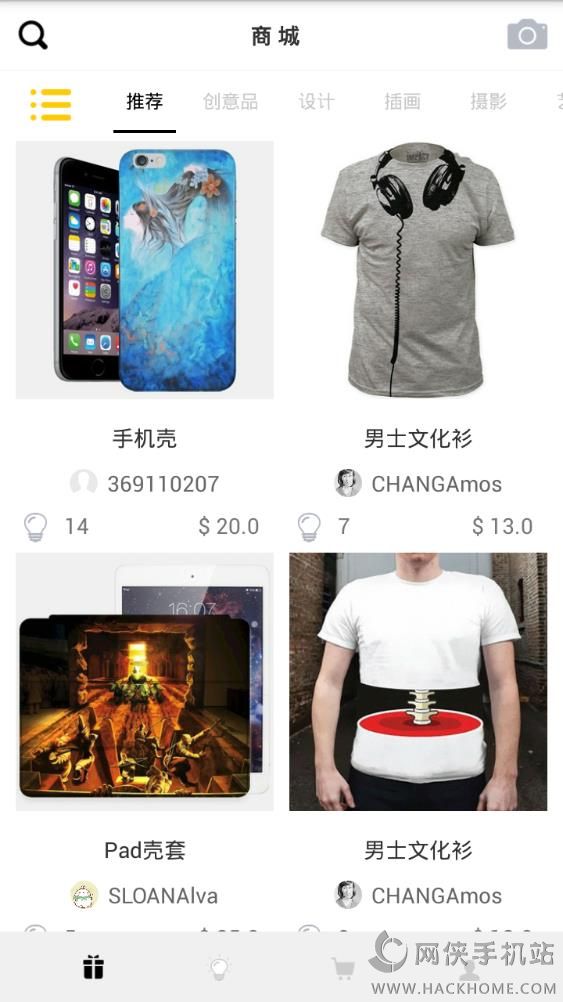 创e商城手机版app下载是一款有创意的生活购物商城软件,有了它,用户方便的购买到自己喜欢的个性化定制艺术商品,同时释放艺术家作品的巨大价值,很有创意对吧!赶紧来选购!
