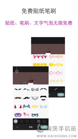 6.无限逗趣!逗逼的装逼神器啊:各种逗趣小贴纸、大头调整、文字气泡、绚丽笔刷,天天趣味不断;