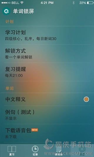 4、学习解锁:锁屏界面滑动单词解锁,让原本浪费的琐碎时间得到更好利用;