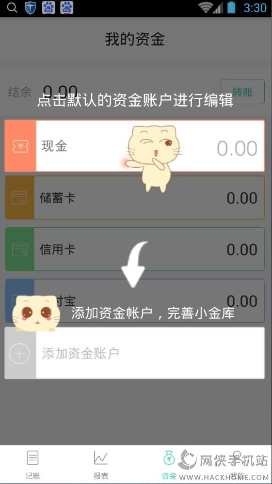 1、可设多个资金账户,现金、储蓄卡、信用卡、支付宝等;
