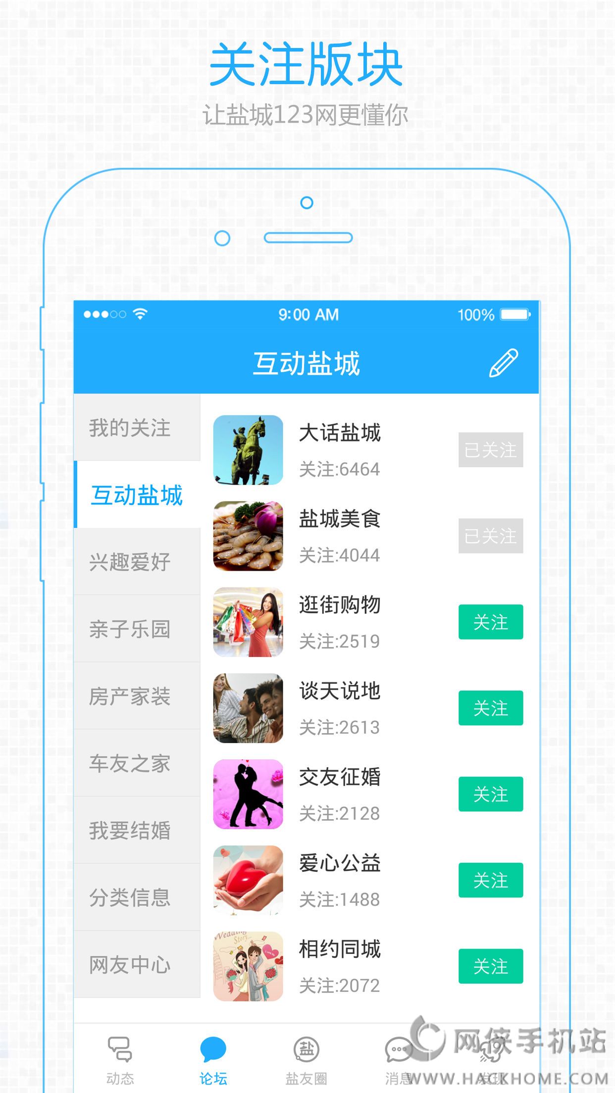 4、下载盐城123网客户端帮你快速找到盐城共同兴趣爱好的圈子。