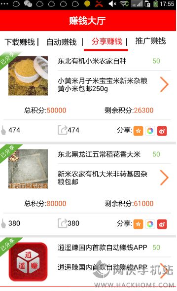 3、转发赚钱也是超简洁的,转发朋友圈一次性奖励5毛钱,不管你多少点击都是给5毛,剩下的就是下载任务跟推广了。
