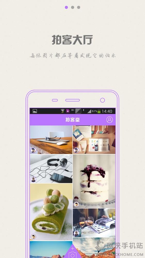 2、在这既有你喜欢的图片,更有喜欢你的人,在拍客堂,你不孤单。拍客堂app让你用快速的方式记录生活中点滴有趣的瞬间,让你的时尚时尚更时尚;