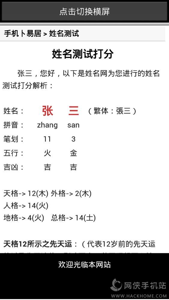 2、软件功能有:姓名测试打分(姓名测算)、五格姓名测试(姓名分析);