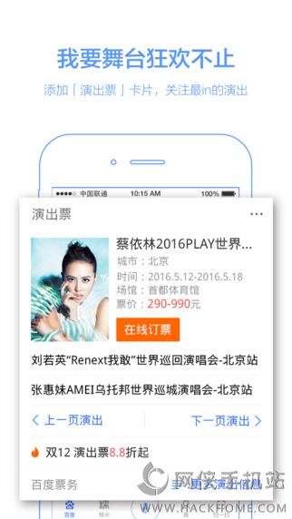 1、我要舞台狂欢不止,添加演出票卡片,关注最in的演出;