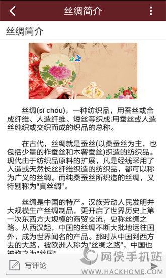 丝绸商城下载手机版app是一款非常实用的应用软件。在这里,你可以随时随地的资讯丝绸的一切信息,是专业介绍丝绸信息的资讯app。需要的你赶快下载体验吧!