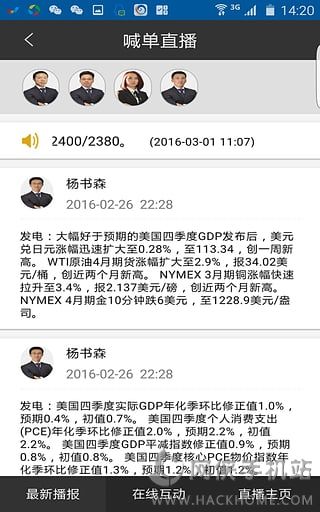 5、“喊单直播”投资者可以与现场主持和专家通过视频画面解答,实现文字、语音、视频同步传输,一改文字、图片直播的单调和局限;