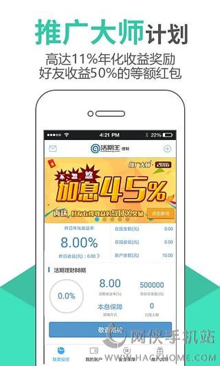 活期王app下载是一款掌上理财应用软件。主要是为大家提供活期理财服务,你可以在这里进行便捷的投资,更有专业人员时时为你提供在线咨询服务。是你理财的好帮手哦!赶快下载体验吧!