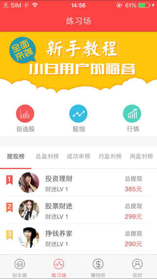 注册i财神用户,即送1万财神币,在玩中学习股票投资技巧,赔钱没损失,盈利可按比例提现;