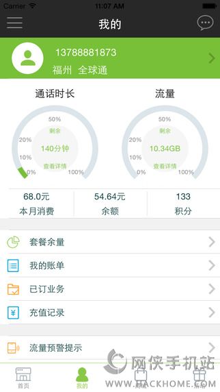 2、这款客户端可以为大家提供手机流量查询、话费查询等功能;