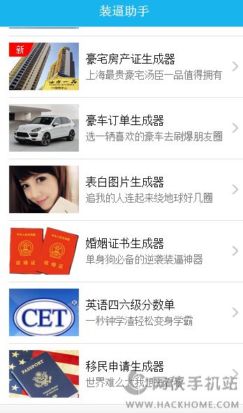 1、装逼生成器是一款基于微信朋友圈内容自定义的软件,通过它你可以自定义你的微信头像、名称、内容、图片、发布时间、赞的人、评论等,达到任何你想要修改的结果,生成的图片;