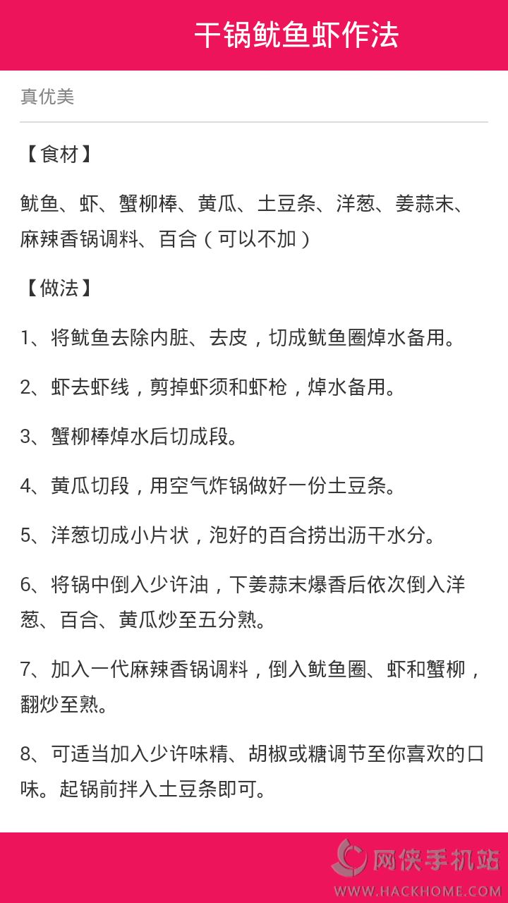 3、提供了丰富的海鲜菜谱进行图文式得制作方法教学。