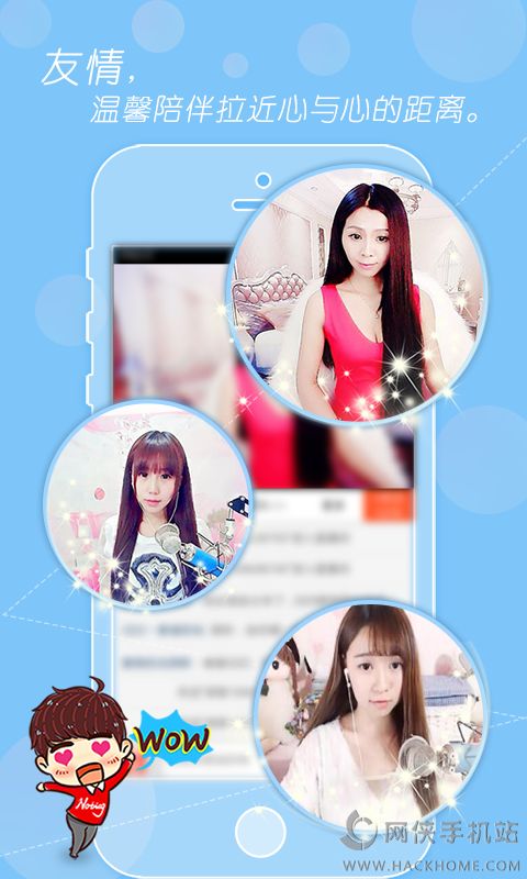 2、丰富多彩的互动形式:在这里,你能和你的偶像明星视频面对面。在这里,你能与海量高颜值美女,谈天说地,畅所欲言,嗨翻全场;在这里,你能感受“中国好声音”、“春晚”、“红馆”万人演唱会的视觉体验,带给你一场全新的视听盛宴。年轻人的交友神器,在这里只说你想说的话,聊你想聊的天;