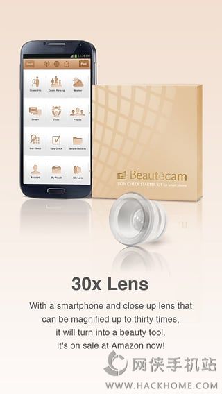 2、加装30倍放大镜头于手机镜头前、再点击开启“肌肤检测”功能;