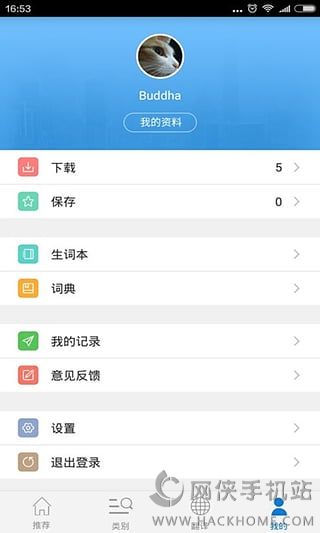 4.【生词记背】个人设置里的「生词本」能储存阅读中遇到的生词,便于随时随地背单词,高效学习;