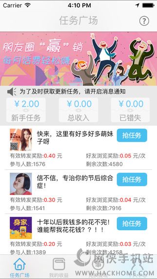 1、【日赚10元】30个以上任务等着抢,每天更新5个以上,轻松转发就能获利多多;