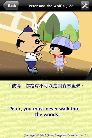 4、利用熟悉的童话故事让小朋友练习听力与字汇,接受双语的语感训练,QLL的目标就是让爸爸妈妈轻轻松松教小朋友学会多种语言,未来更有竞争力。