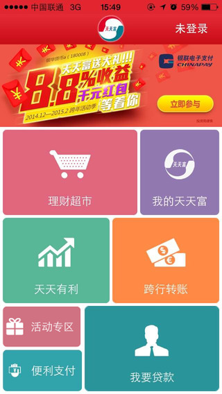 天天富理财下载手机版app:是银联进行打造的手机理财客户端,为广大网民提供了最丰富、最优质的理财投资产品。所有的理财产品100元起投,门槛超低,让更多的手机用户参与到理财投资的队伍。