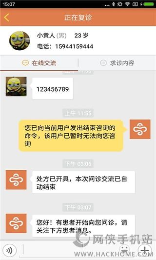 5、价反馈,可看已结束的初诊复诊列项。点击某项可查看问诊聊天过程,查看处方,可对医生做评价并查看;