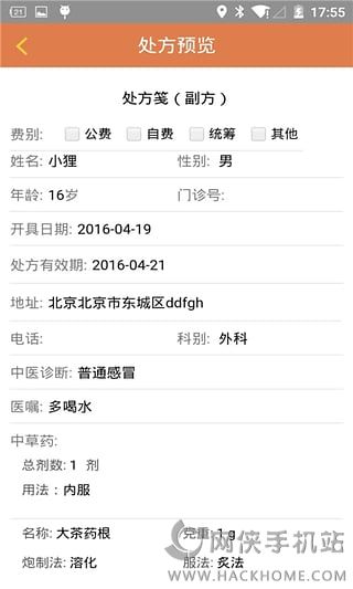 6、查看处方,在“我”中可查看处方列项,以及各处方的详情。