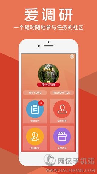 爱调查网手机版app下载:是一款参与市场调研活动赚钱的手机软件,非常的简单,所有的网络用户都可以参与进来赚钱。每天,会友各种问卷调查等等调研活动,领取任务,完成一份调查问卷,就能立即获得收益!