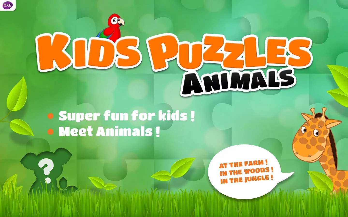 1、“孩子们益智游戏-动物”是我们的乐趣孩子游戏为幼儿1,动物拼图的男孩和女孩。获取大量的欢笑和乐趣与美丽的图形,高品质的声音效果,3完全不同的背景和许多难题要解决设置。