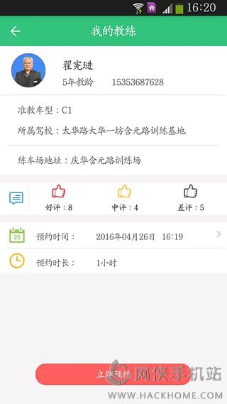 3、一键报名,订单评价即教练评价,驾考技巧等功能。