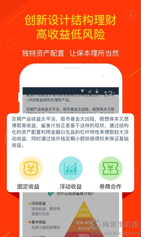 1、博取高收益:鲨鱼计划收益模式为保底收益+浮动收益,利用结构化产品的杠杆博取高收益,综合收益区间为5%~36%;
