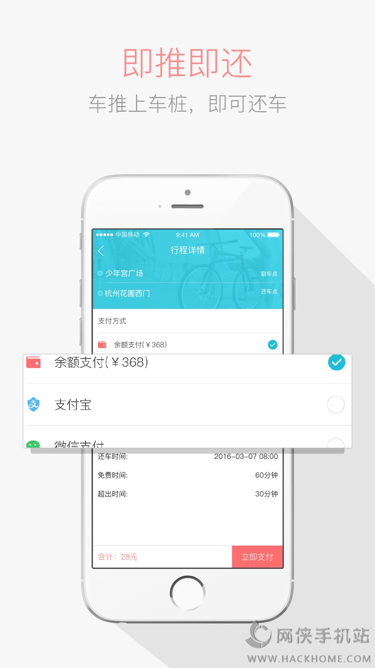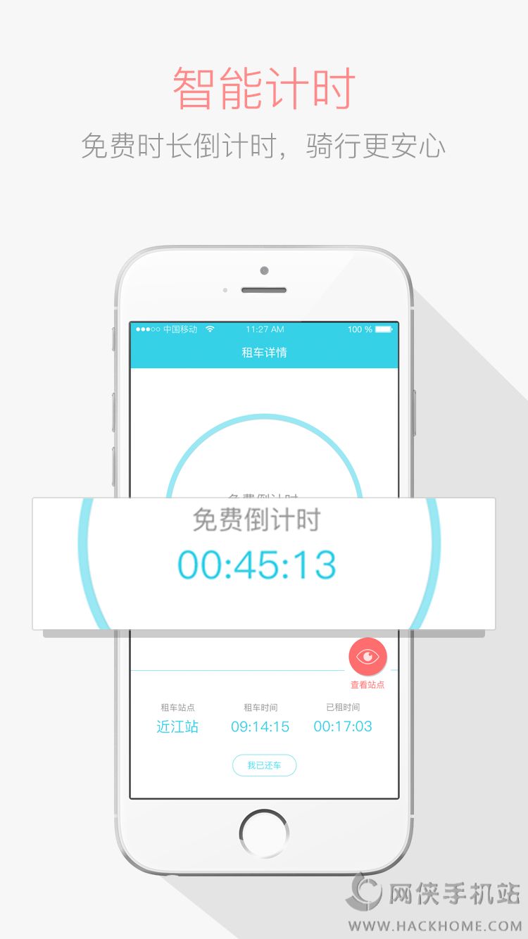 4、【即推即还】车推上车桩,即可还车。