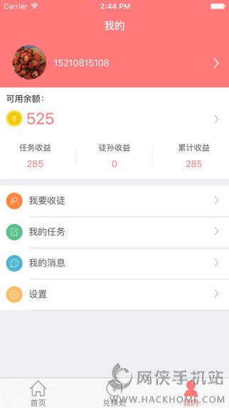 1、这是一款可以通过做任务,分享任务,也可以通过收取徒弟,徒孙赚取F币的手机APP应用;
