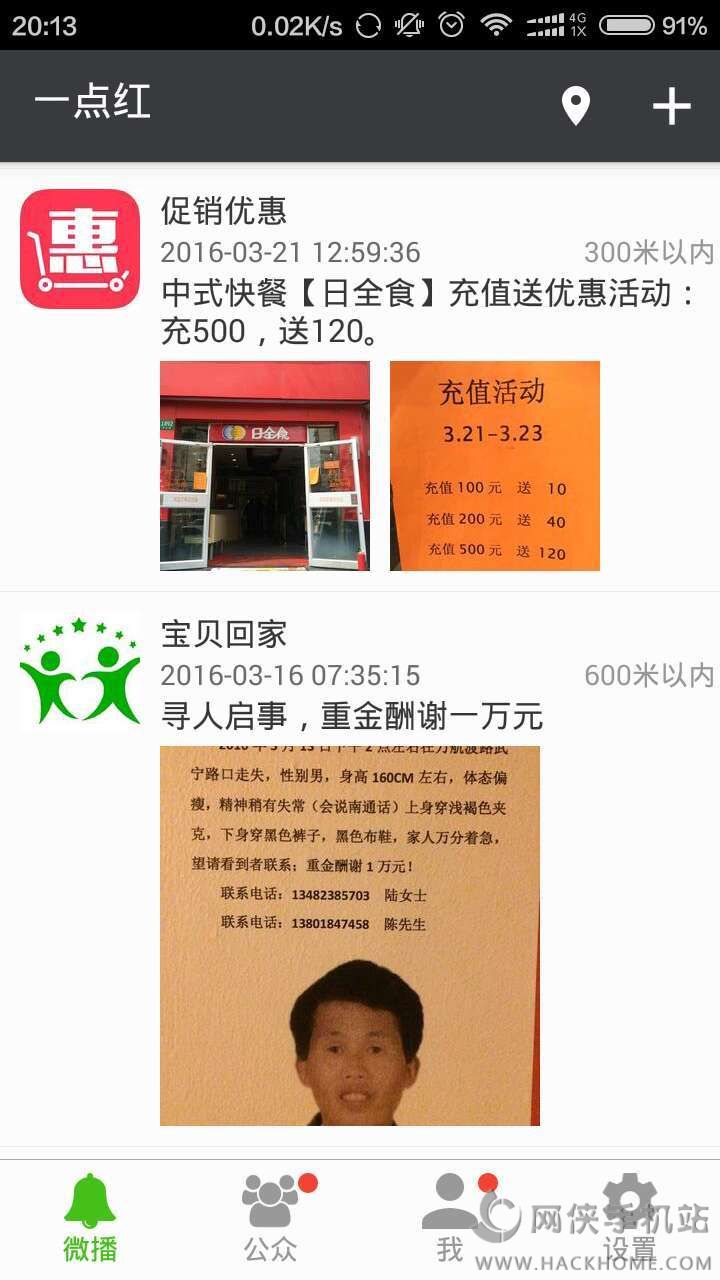 3、可以用微播告诉大家附近的通知、招聘、优惠、寻物、活动等信息,可以告诉大家你的服务;