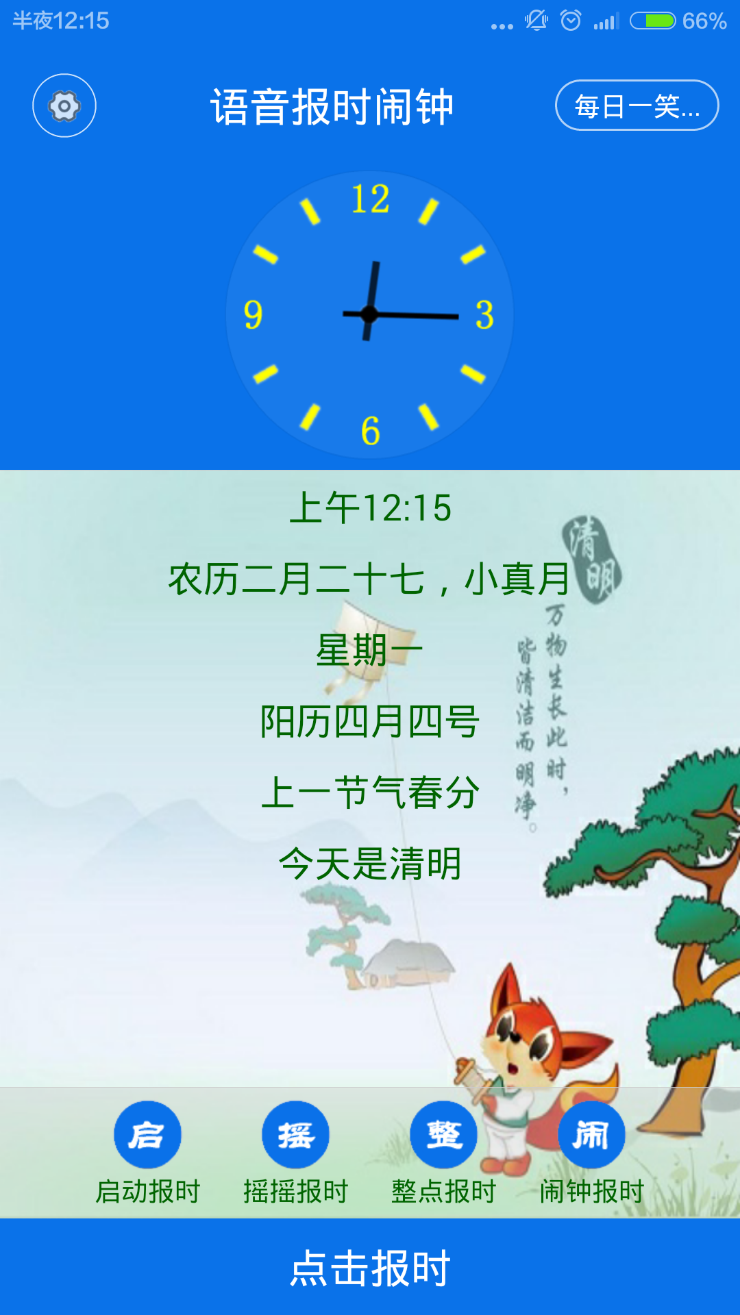 1、整点报时、摇一摇报时、自定义闹钟报时、启动报时、点击报时,支持自定义报时内容,包括当前时刻、农历、大小真月、24节气、阳历、星期;