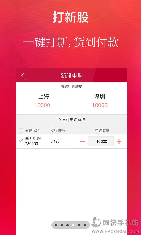 2、新股申购全面支持新规则,一键申购、货到付款;