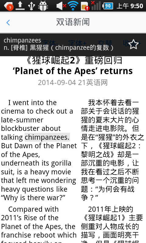 每日双语新闻APP特点: